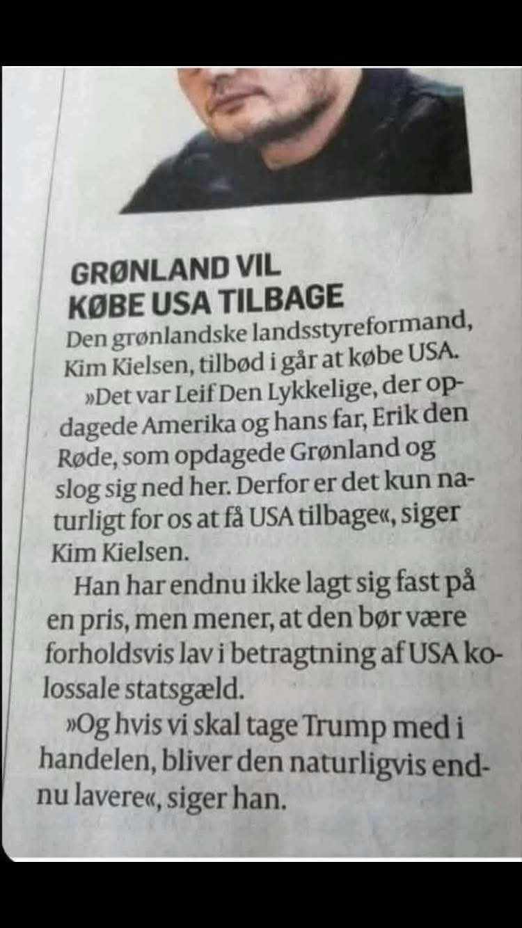 The Prime Minister of Greenland, Kim Kielsen, offered yesterday to buy the United States.