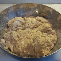 Fill a bowl with hand warm water, more water will give a more light bread, but is more difficult to knead, add the sourdough. You can eventually add the 1/8 of a cube of yeast, this can help to give the bread a more airy structure, but be careful not to add too much yeast, as it will steal the taste of sourdough from the bread. Stir the water until the sourdough is dissolved.