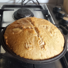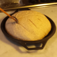 Bake the bread for 15-20 minutes in the dutch oven within the oven, open the dutch oven by taking the top of, and continue the baking with 200°C for an other 15-20 minutes, or until the bread has a golden color you like and a hollow sound, when you knock on the bottom of the bread.