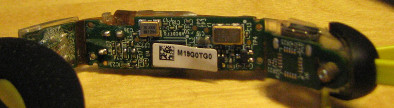 With some difficulty I open up the whole headset (see picture 4). You can see the right part contains all the electronics (see picture 6), while the left part contains a small 85mAh battery (see picture 5). The left part looked healthy and in fact I have never had problems with charging the headset, as well with play time.