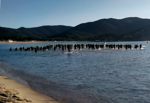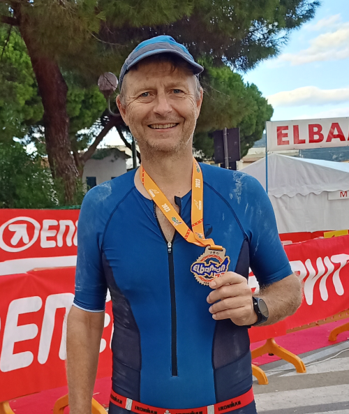 The swim was in crystal clear water. The cycle course was very, very beautiful, but tough with two steep segments, you have to do two times. The part of the run course, within Marina di Campo and up along the sea side, is very nice, but the two segments inside the island are less nice.