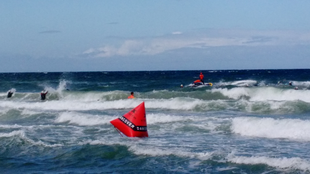 Start go! Into huge waves and strong stream.